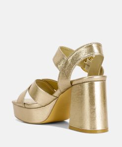 Step into the 70s with these metallic strappy high block heel sandals, exuding evening glamour. Ideal for a night out, these sandals offer a refreshing alternative to black platform boots everyone is wearing. Make a statement on the dance floor in these unique heels. Embrace their stylish appeal and enjoy a touch of vintage-inspired elegance that will undoubtedly set you apart from the crowd.