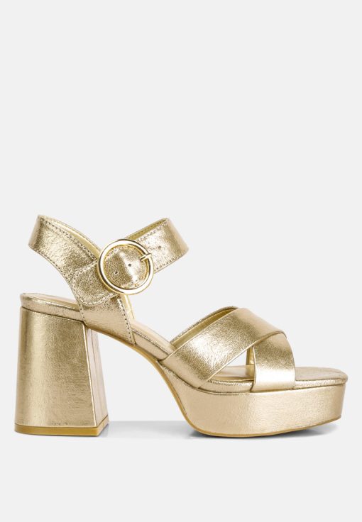 Step into the 70s with these metallic strappy high block heel sandals, exuding evening glamour. Ideal for a night out, these sandals offer a refreshing alternative to black platform boots everyone is wearing. Make a statement on the dance floor in these unique heels. Embrace their stylish appeal and enjoy a touch of vintage-inspired elegance that will undoubtedly set you apart from the crowd.