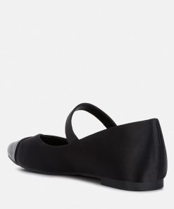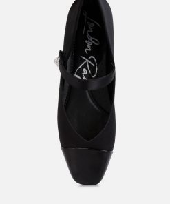 A fusion of sophistication and style, these Mary Janes feature a glossy patent toe cap that adds a touch of elegance. Crafted with satin, they offer a luxurious feel. Perfect for both formal occasions and chic events, these shoes effortlessly combine timeless charm with contemporary allure.