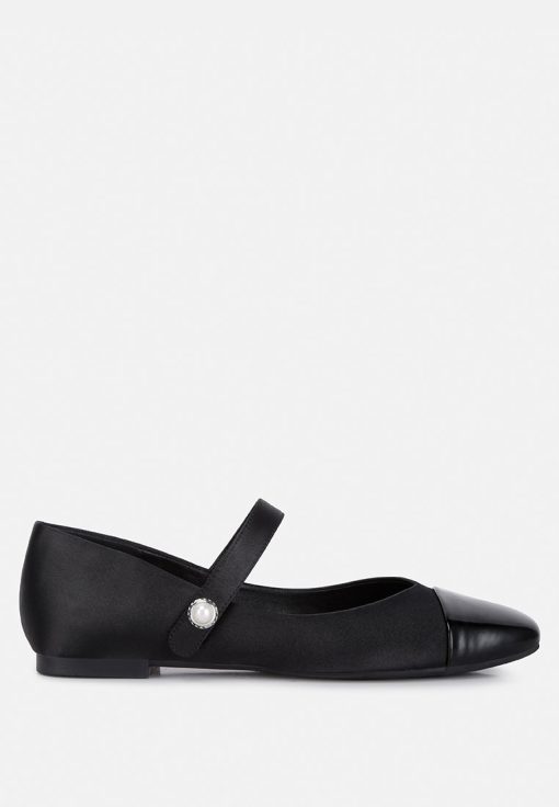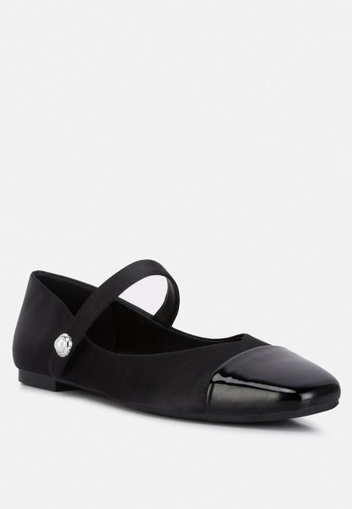A fusion of sophistication and style, these Mary Janes feature a glossy patent toe cap that adds a touch of elegance. Crafted with satin, they offer a luxurious feel. Perfect for both formal occasions and chic events, these shoes effortlessly combine timeless charm with contemporary allure.