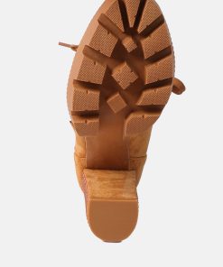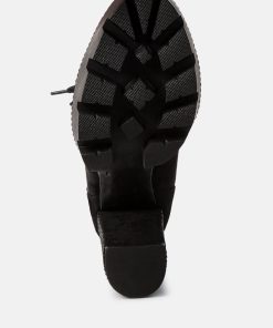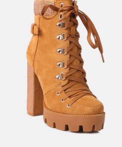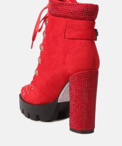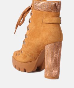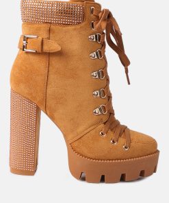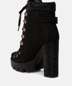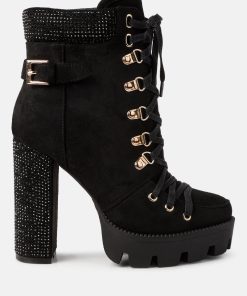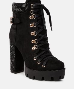 Birch Block Heeled Ankle Boots are rhinestone boots with cushion collar. These high heeled boots come with a back buckle, a sturdy lug sole, and metal eyelet detailing. You can’t go wrong with this pair of ankle boots for any of your outfits. The lace up closure adds esthetic to the shoe. These girls boots for sure will make heads turn to make you the quintessential diva you are.