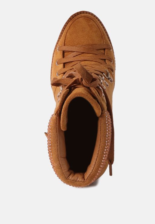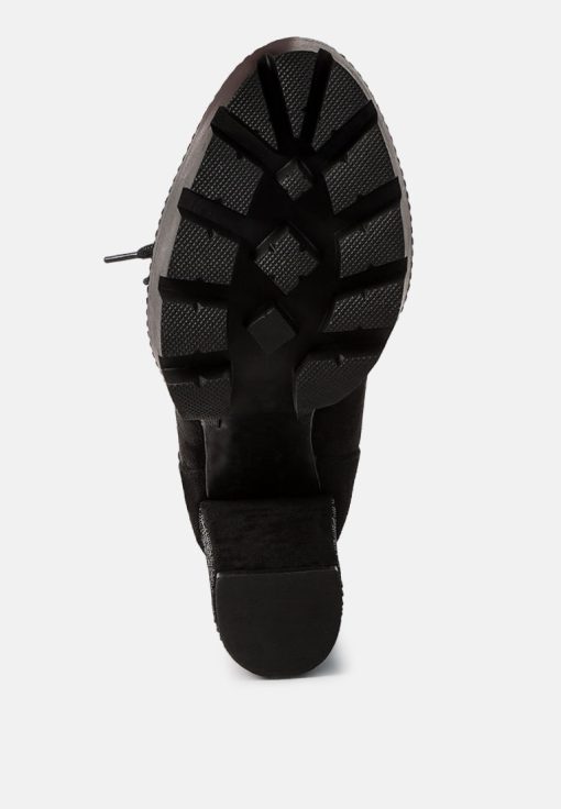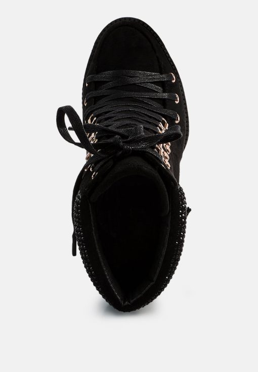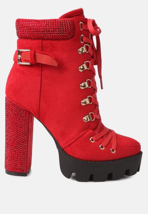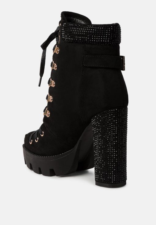 Birch Block Heeled Ankle Boots are rhinestone boots with cushion collar. These high heeled boots come with a back buckle, a sturdy lug sole, and metal eyelet detailing. You can’t go wrong with this pair of ankle boots for any of your outfits. The lace up closure adds esthetic to the shoe. These girls boots for sure will make heads turn to make you the quintessential diva you are.