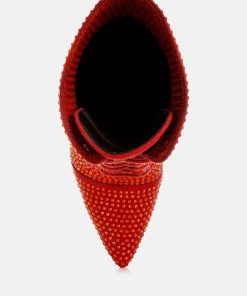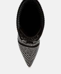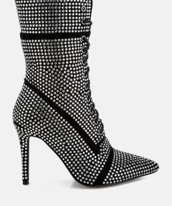 These boots are a sign that you should soon have a disco night! Everything glamorous and gorgeous, the rhinestones embellished boots are crafted with high quality microfiber and have a lace up design that ensures a snug fit. The comfortable insoles cut strain and offer a relaxed fit.