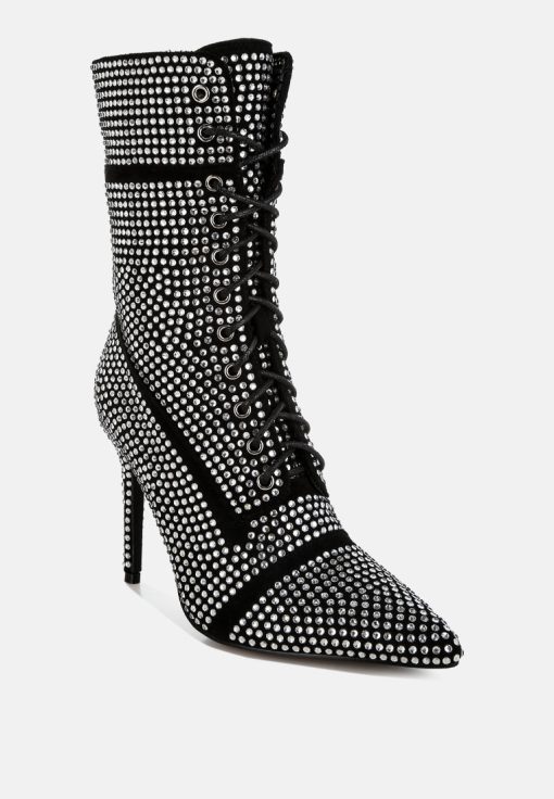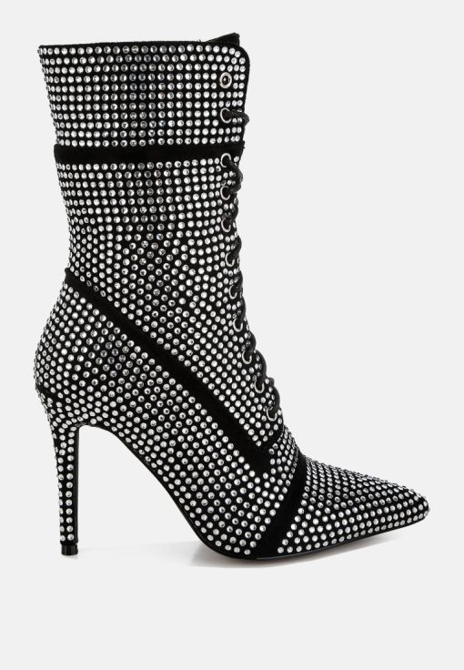 These boots are a sign that you should soon have a disco night! Everything glamorous and gorgeous, the rhinestones embellished boots are crafted with high quality microfiber and have a lace up design that ensures a snug fit. The comfortable insoles cut strain and offer a relaxed fit.