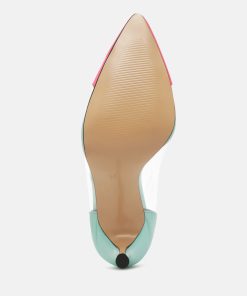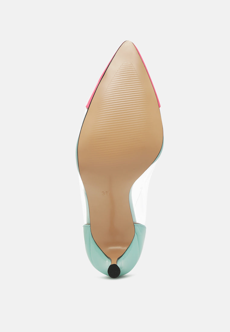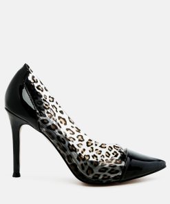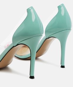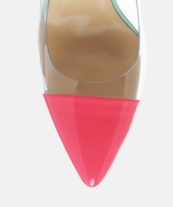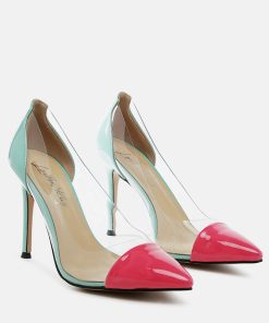 These funky, see-through clear pumps feature a patent faux leather counter and toe, making them the boldest, fashion-forward choice you can add to your wardrobe. Pair them with jeans or mini skirts throughout the year.