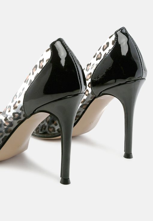 These funky, see-through clear pumps feature a patent faux leather counter and toe, making them the boldest, fashion-forward choice you can add to your wardrobe. Pair them with jeans or mini skirts throughout the year.