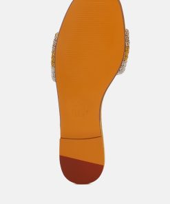Looking for a pair of flat sandals for comforting everyday use with a hint of sparkle? Walk in our intricate rhinestone-embellished flats, designed to complement a spring maxi dress, cut-off shorts, or a sundress.