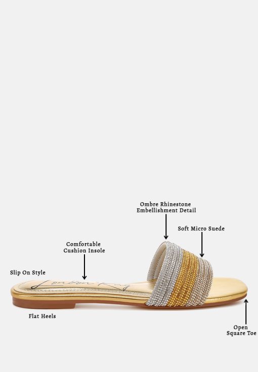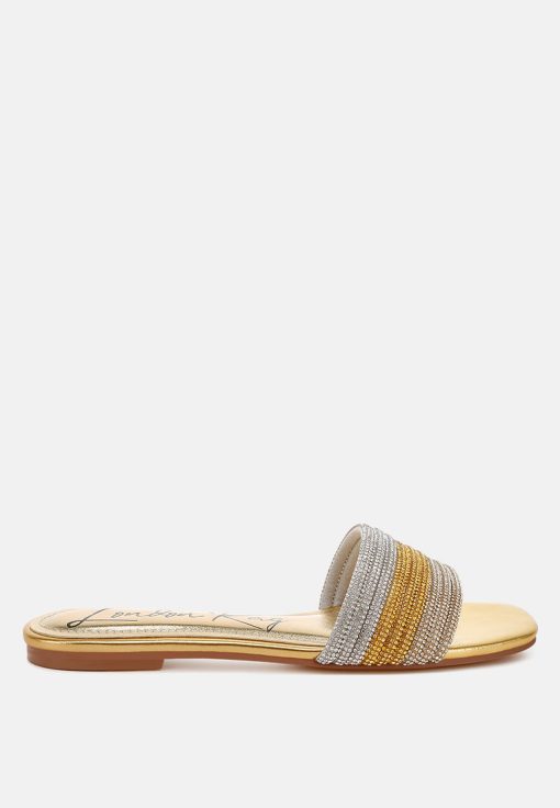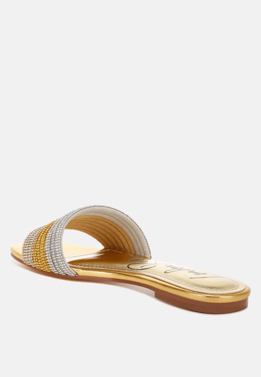Looking for a pair of flat sandals for comforting everyday use with a hint of sparkle? Walk in our intricate rhinestone-embellished flats, designed to complement a spring maxi dress, cut-off shorts, or a sundress.