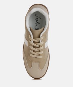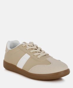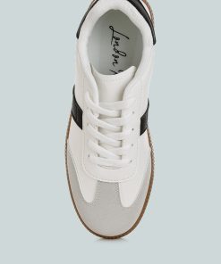 Infuse your look with a sporty edge using these lace-up kicks. Crafted from a mix of premium faux leather and microfiber, they feature a comfy flatform heel and a classic round-toe design. Perfect for pairing with your go-to loungewear or boyfriend jeans, these sneakers are an absolute must-have for effortless looks.