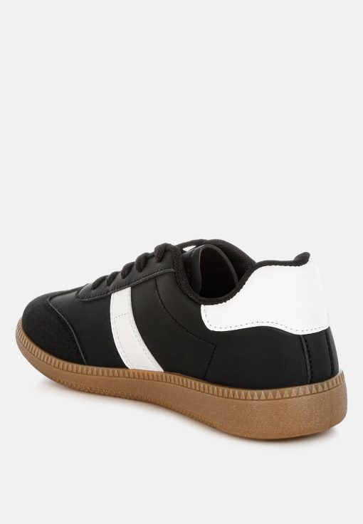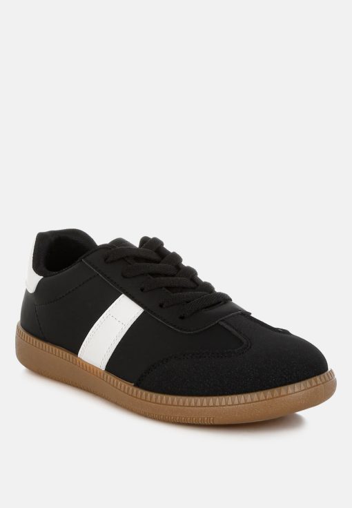 Infuse your look with a sporty edge using these lace-up kicks. Crafted from a mix of premium faux leather and microfiber, they feature a comfy flatform heel and a classic round-toe design. Perfect for pairing with your go-to loungewear or boyfriend jeans, these sneakers are an absolute must-have for effortless looks.