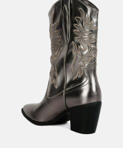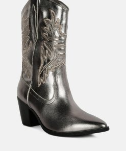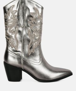 Women’s Shoes London Rag Dixom Western Cowboy Ankle Boots | Silver