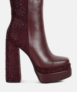This is the ideal party boot, with Diamante details on the block heel and boots that will go with all of your pretty outfits. Its side zipper and Lightly Cushioned Insole add to its elegance and comfort, while its front square toe with Diamante embellishment make it stylish.