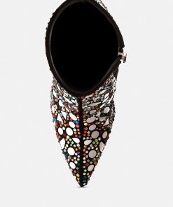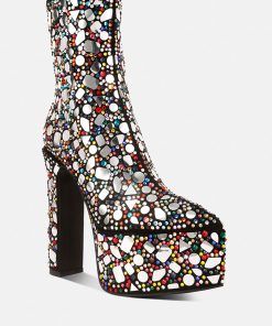 A maximalist’s dream, the embellished platform boots are striking with the mirrors and rhinestone embellishment. The high block heel amplifies the visual aesthetic as well as gives you that elevated effect. The lightly cushioned insoles cut strain and make sure you can party all night wearing these beauties!