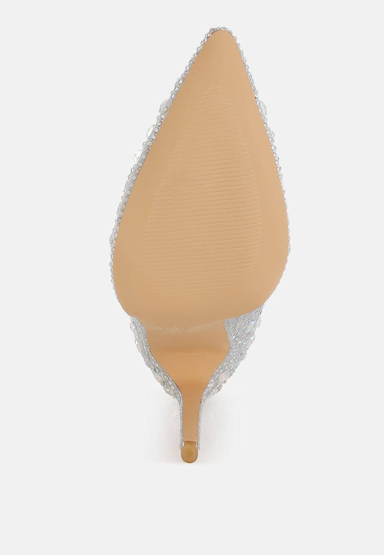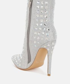 Women’s Shoes London Rag Frostin Pointed Toe Rhinestones Stiletto Boots | Silver