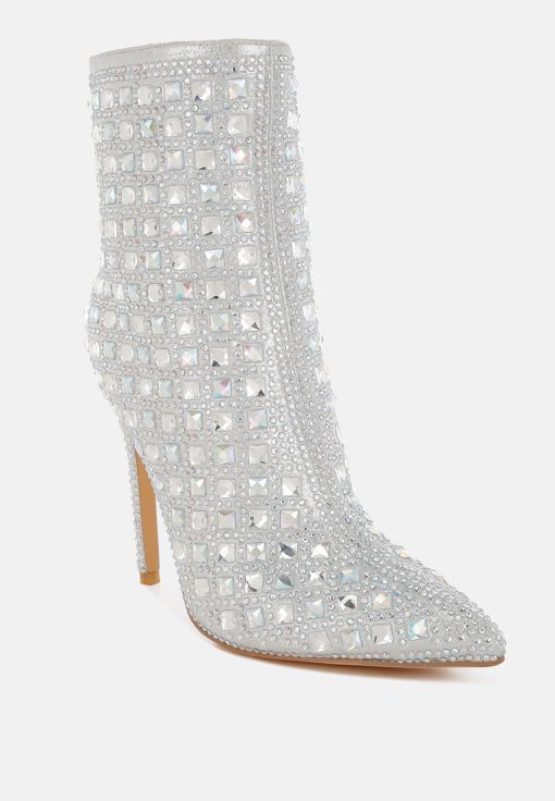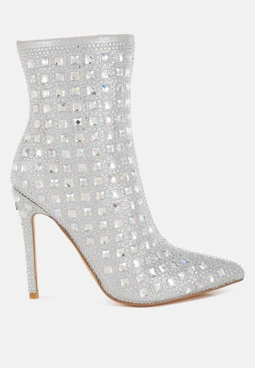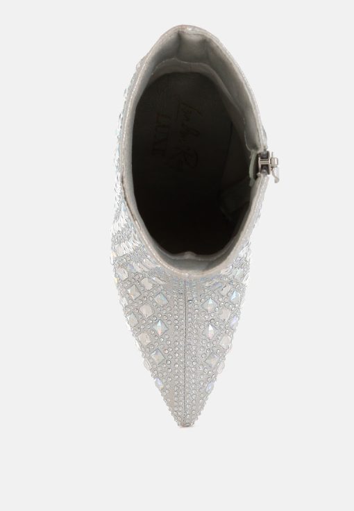 Women’s Shoes London Rag Frostin Pointed Toe Rhinestones Stiletto Boots | Silver