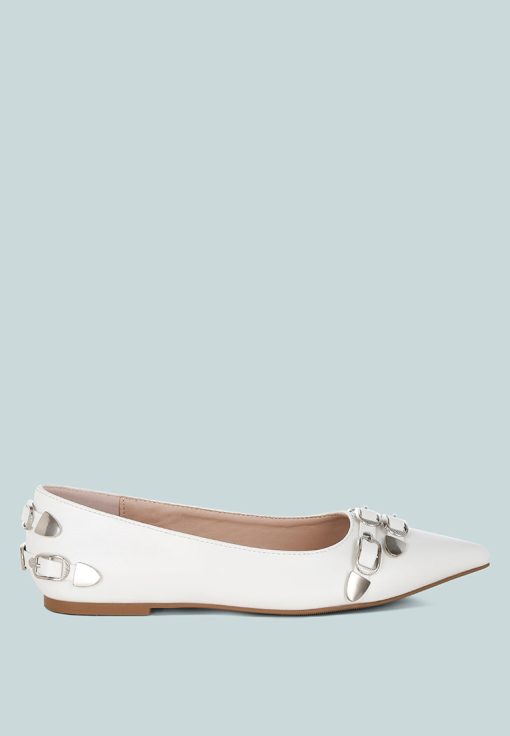 Women’s Shoes London Rag Golini Belt Buckle Detail Ballerinas | White