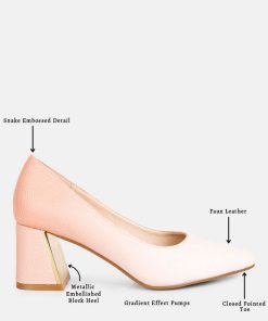 The gradient pumps are a trendy touch and look extremely stylish with the accentuating metallic detail block heel. These are not your ordinary pumps but rather an extraordinary version to make sure you shine bright in a crowd!