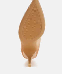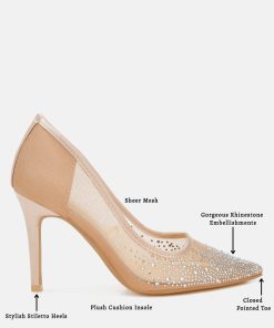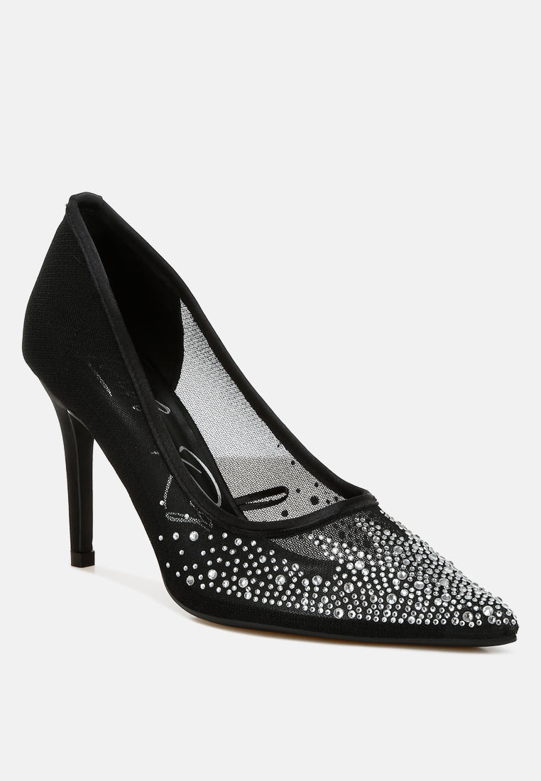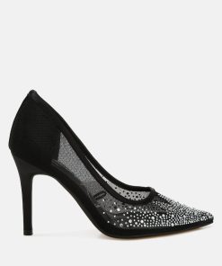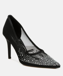 Meet the exquisite rhinestone-embellished pumps, bound to create a sizzling, spellbinding impression. The pumps feature tall stiletto heels, a closed pointed toe for added drama and plush cushion insoles for extra comfort. Ideal for parties, weddings, and romantic date nights.