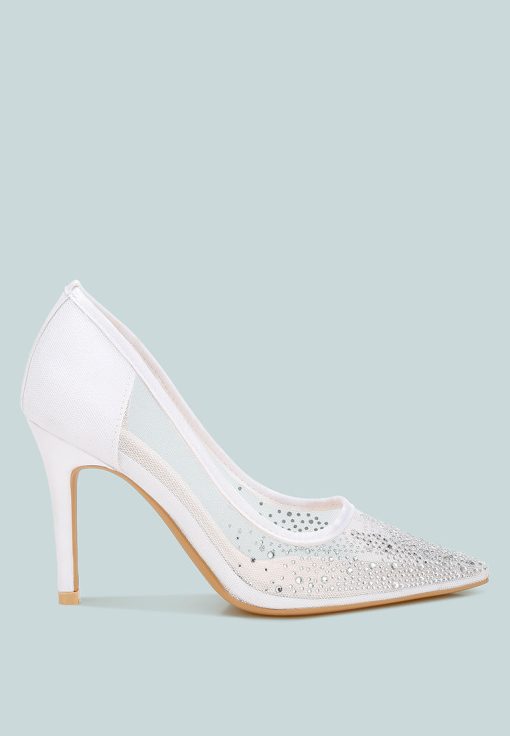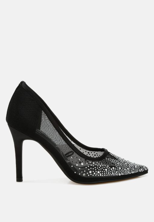 Meet the exquisite rhinestone-embellished pumps, bound to create a sizzling, spellbinding impression. The pumps feature tall stiletto heels, a closed pointed toe for added drama and plush cushion insoles for extra comfort. Ideal for parties, weddings, and romantic date nights.