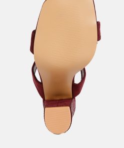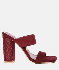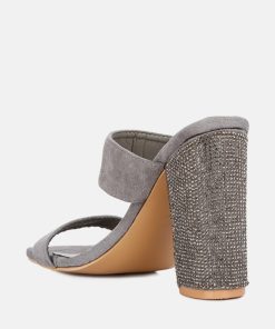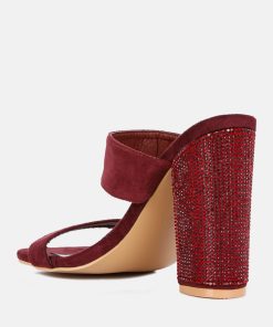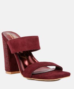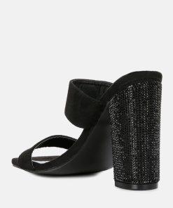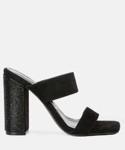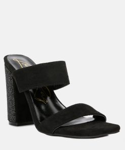 The block heel sandals are sure a beauty! They have rhinestones embellished on the heel and a minimal two-strap vamp—to secure the feet well, and a soft cushion insole making them a must-have pair in your wardrobe!