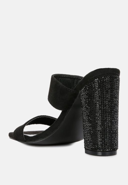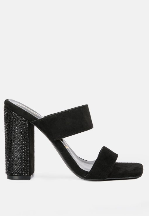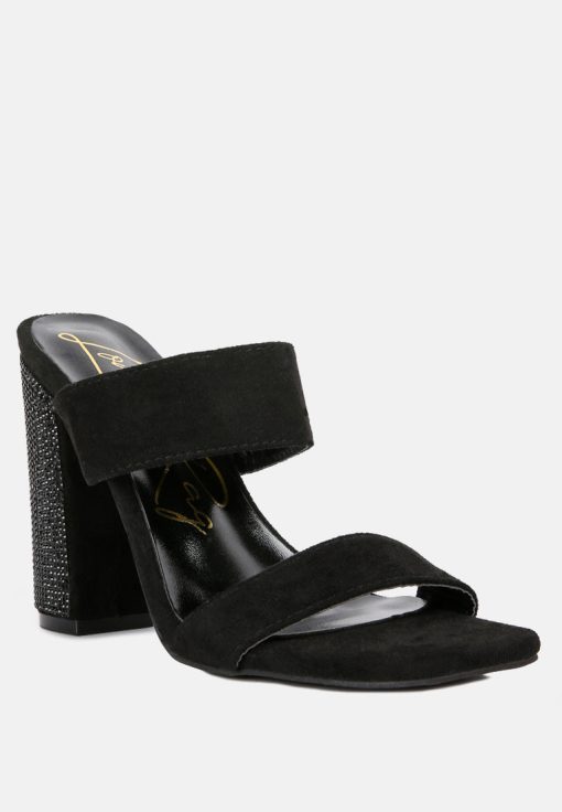 The block heel sandals are sure a beauty! They have rhinestones embellished on the heel and a minimal two-strap vamp—to secure the feet well, and a soft cushion insole making them a must-have pair in your wardrobe!