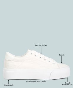 Women’s Shoes London Rag Hyra Solid Flatform Canvas Sneakers | White