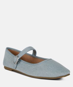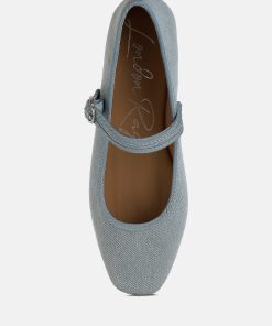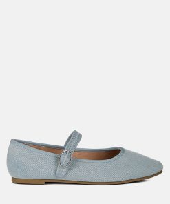 Looking for shoes to wear to a party or on days when you want your footwear game to be strong? These denim ballerinas, with a flat heel, a pin buckle ankle strap closure, and plush cushion insoles, are everything you need!