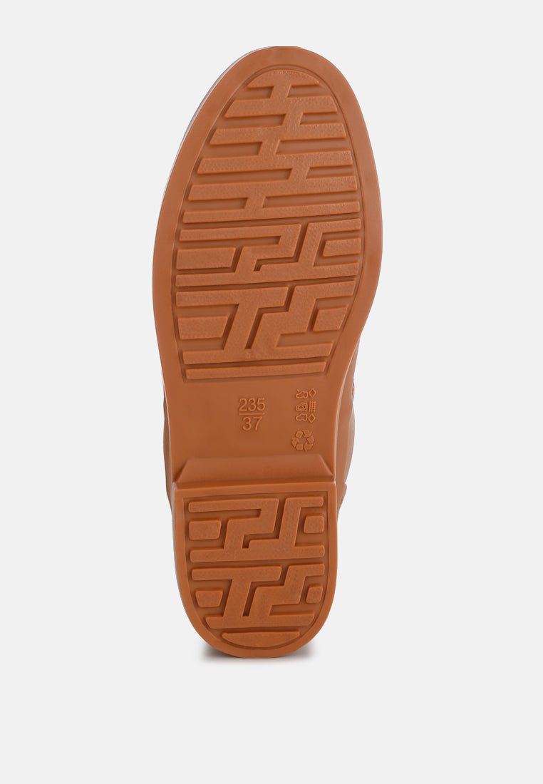 Simplistic, versatile, and chic, the calf boots are a statement piece with their eclectic design that stands out! The rain boots make a bold statement by themselves and the charm detail adds an intriguing element to the design! The perfect addition to your monsoon wardrobe!