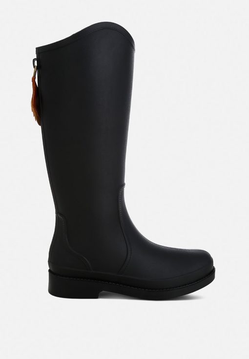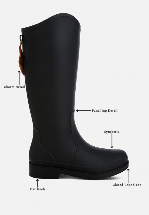 Simplistic, versatile, and chic, the calf boots are a statement piece with their eclectic design that stands out! The rain boots make a bold statement by themselves and the charm detail adds an intriguing element to the design! The perfect addition to your monsoon wardrobe!