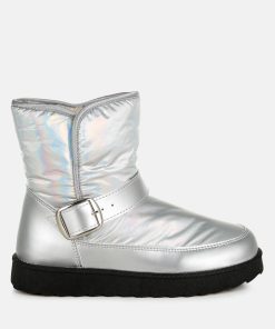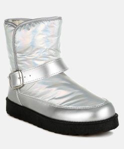 Women’s Shoes London Rag Jammy Buckle Strap Puffy Ankle Boots | Silver
