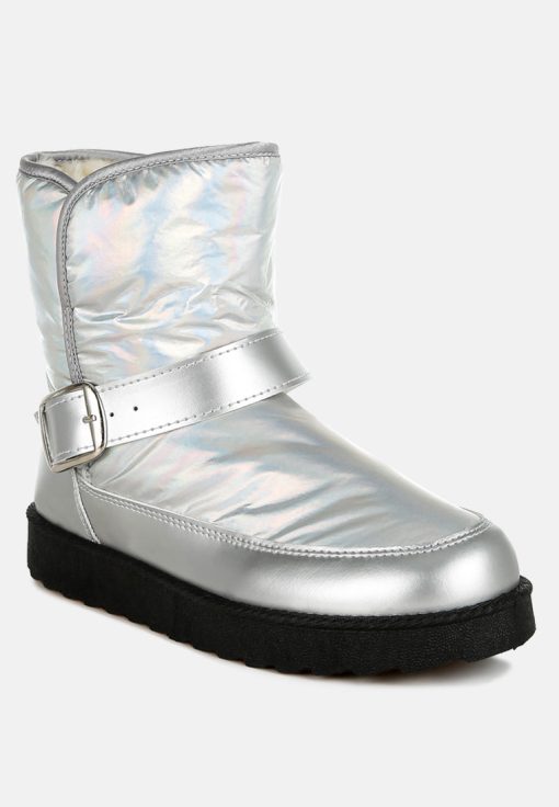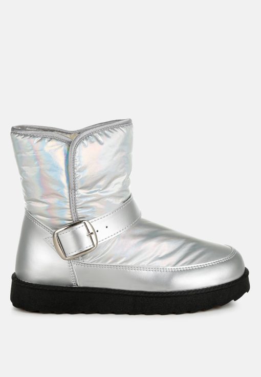 Women’s Shoes London Rag Jammy Buckle Strap Puffy Ankle Boots | Silver