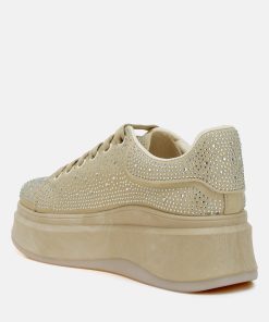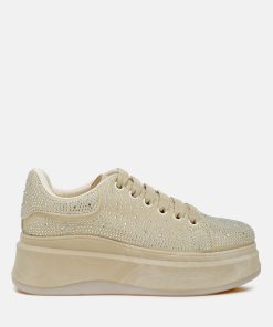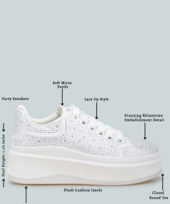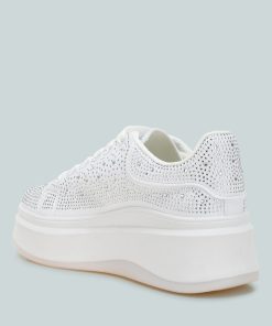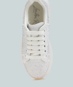 Women’s Shoes London Rag Jitter Bug Rhinestones Embellished Chunky Sneakers | White