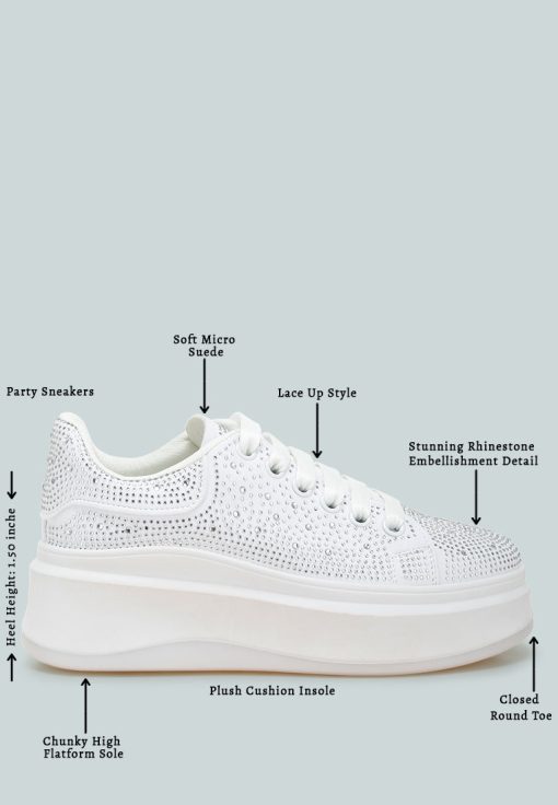 Women’s Shoes London Rag Jitter Bug Rhinestones Embellished Chunky Sneakers | White