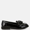 Experience our refined faux leather loafers with a chic tassel detail. These flatform faux leather loafers shine with a metallic finish and timeless mock stitch. Style these round-toe beauties with cigarette pants, chinos, or cozy loungewear for a look that’s sure to impress.