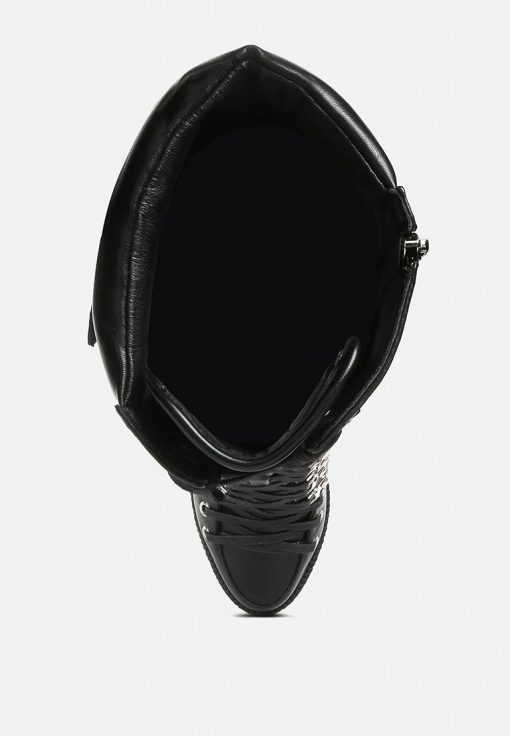 The cushion collared boots are all about being comfy and chic, and with the gorgeous eyelets details accentuating the visual aesthetic, the heeled boots give retro yet classy vibes. The lug soles are a trendy touch but complement well with the high heeled boots. A must-have for the holiday season, indeed!