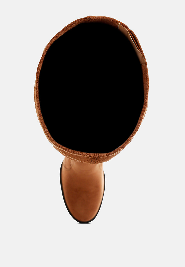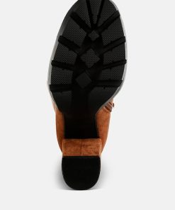 A winter perfect shoe is here. Our Maple Faux Suede Long Boots is the answer to all your winter shoe problems. These gorgeous-looking platform boots have sturdy lug soles and front paneling. It comes with a slightly padded insole and a side zipper for easy access. With style being a plus it even gives you the warmth and comfort of a woolen blanket. For a cold winter day, these heeled boots will be the hug your feet always wanted, not to mention the stand-out style will heat the outside as well with its hotness.