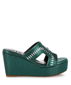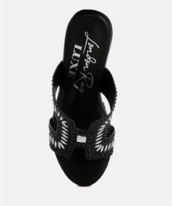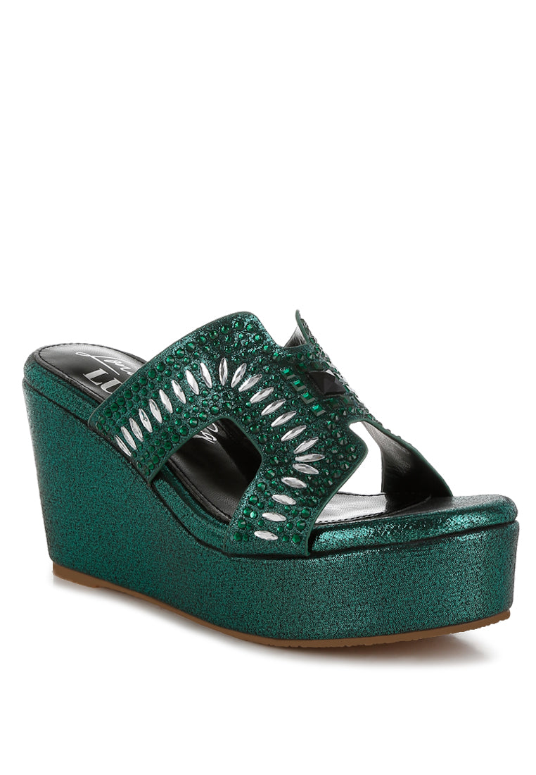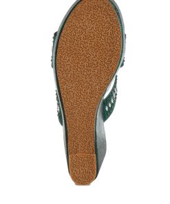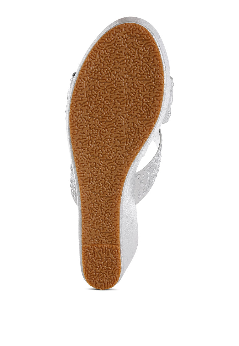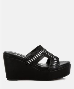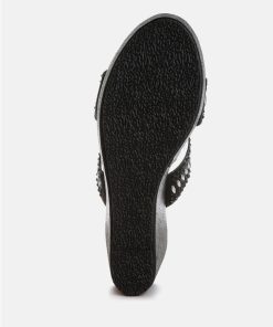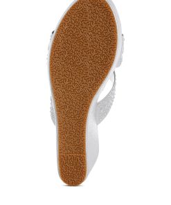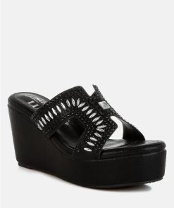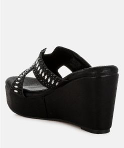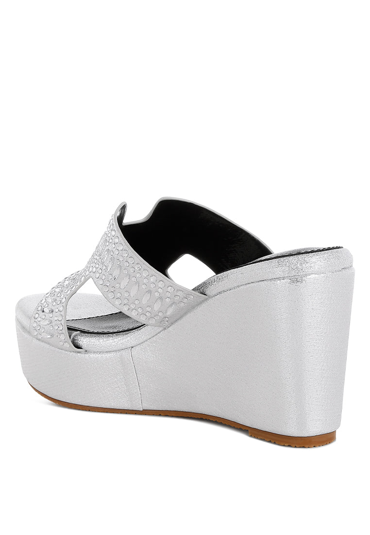 The high wedge sandals, with a chic 3-inch heel height, are exclusively stunning. They feature diamante and rhinestone-embellished cut-out details that make them a must-buy this wedding season. The slip-on wedge sandals, with an edgy silhouette and plush cushion insoles, are everything you need to pair with an evening gown or date night thread.