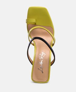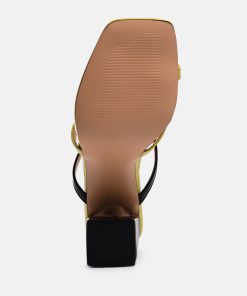 A pop of funk and art with these duo tone contrast sandals. For an artsy vision on your regular old jeans and crop tops, make fashion purposeful and though out. Look put together without thinking too much, these heels pair well with any simple outfit; soon you will be reaching out for them everyday!