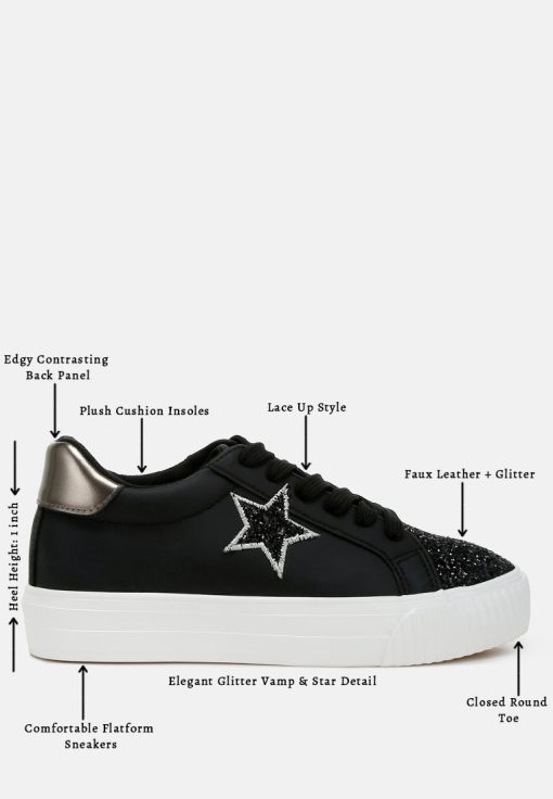 Elevate your sneaker game with these chunky star sneakers with a glitter patch vamp and a metallic counter, giving the sneakers an eclectic unique look. The sneakers give a secure and comfortable fit with the lace up design and comfortable cushion insole.