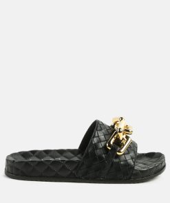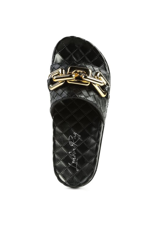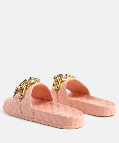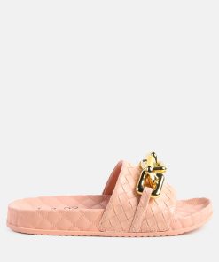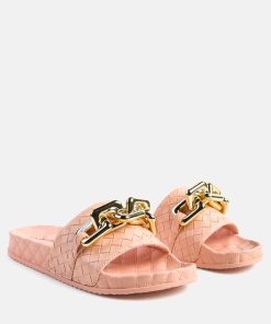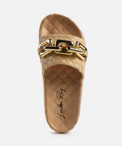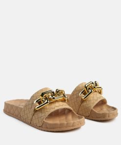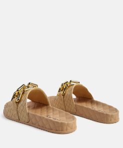 Women’s Shoes London Rag Miami Shot Bling Chain Strap Woven Slip On Flats | Latte