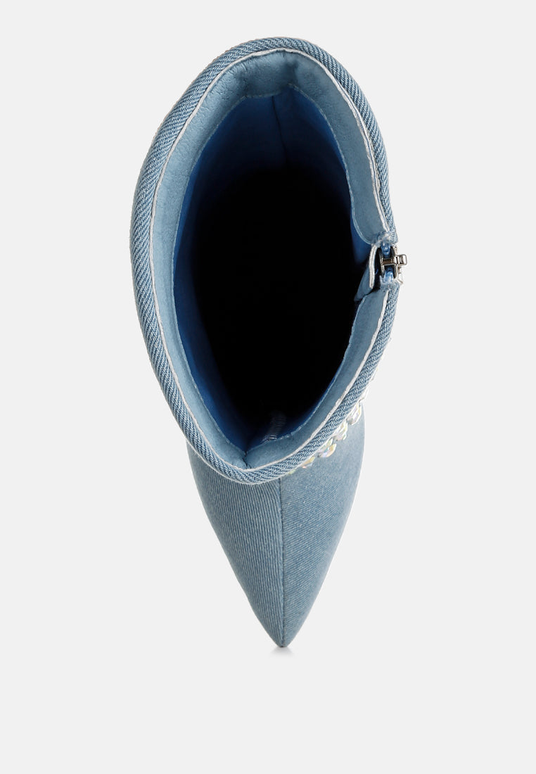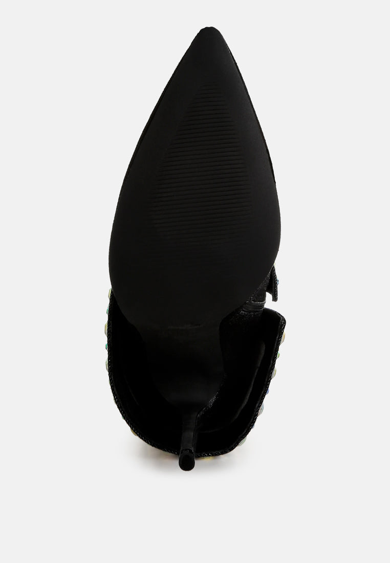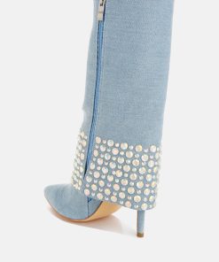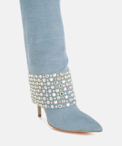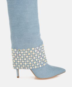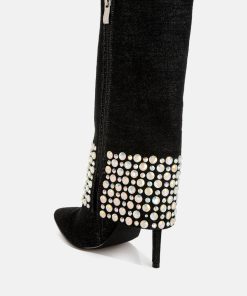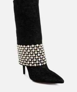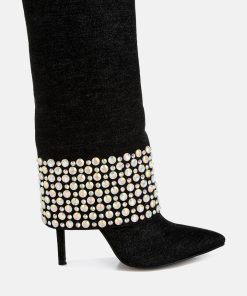A pair of bling beauties, the foldover beauties exhibit an elegant and sophisticated demeanor with structured diamante and rhinestone embellishments. The boots are ravishing and would definitely turn some heads your way!