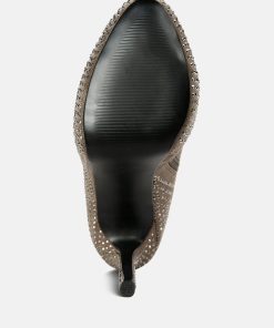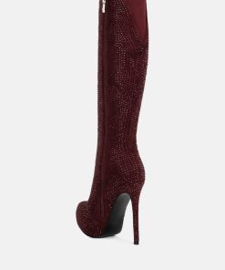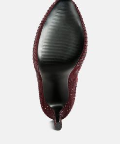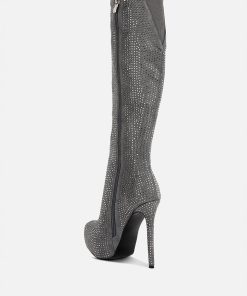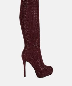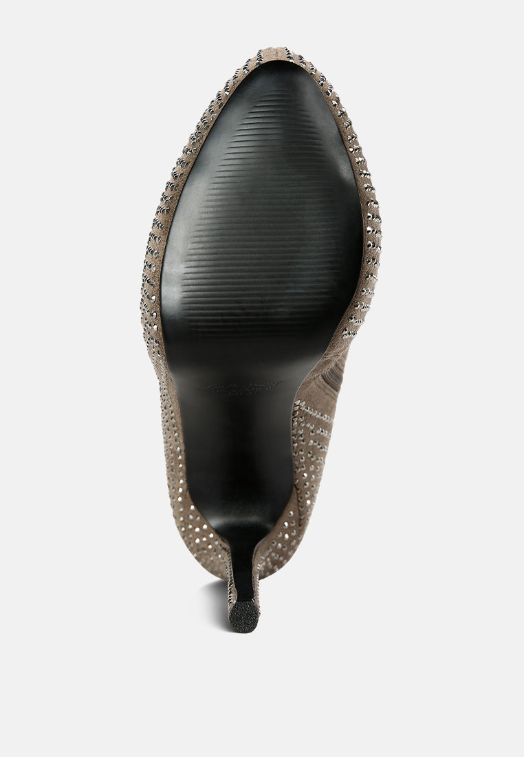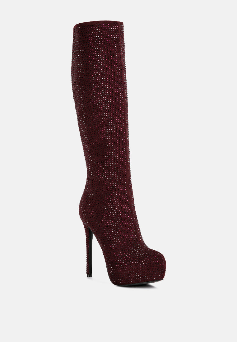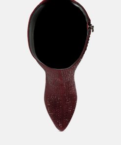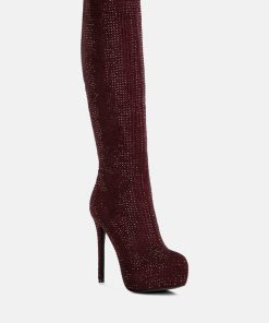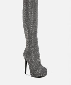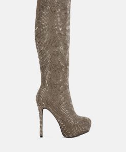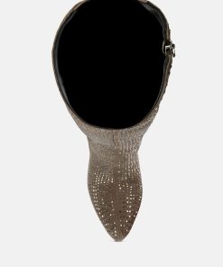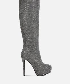 Outshine them all, the rhinestone embellished boots are drop dead gorgeous with platform heel elevation and the bold look of the stiletto heels. These are the perfect party shoes and would also be a dazzling pair with a bridal outfits or wedding heels for winter weddings.