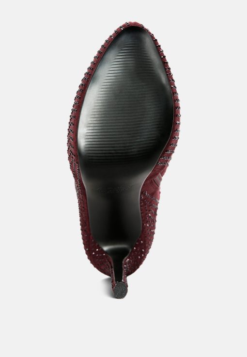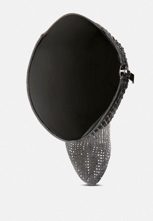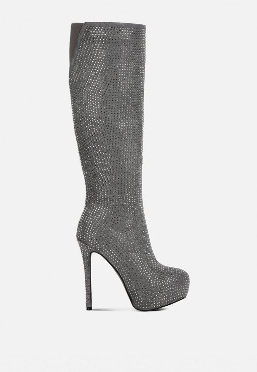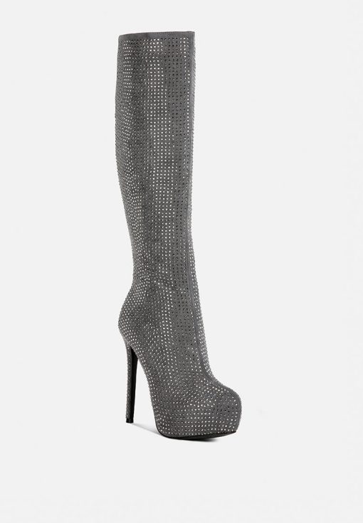 Outshine them all, the rhinestone embellished boots are drop dead gorgeous with platform heel elevation and the bold look of the stiletto heels. These are the perfect party shoes and would also be a dazzling pair with a bridal outfits or wedding heels for winter weddings.