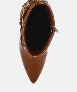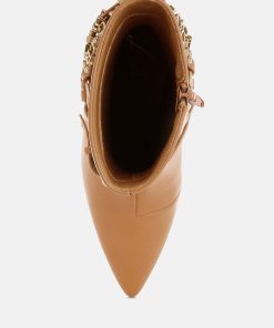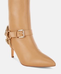 The boots are a sight to behold with the eccentric buckle harness detail which makes a bold statement and the alluring stiletto heels. The boots are comfortable with cushion insoles and would beautifully elevate any outfit you pair it with.