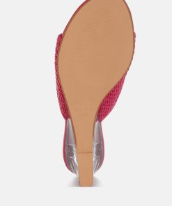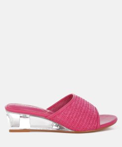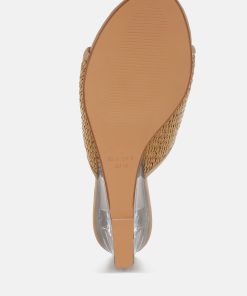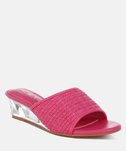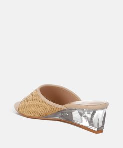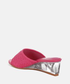 Introducing classic slip-on sandals featuring a delicate mesh upper and an open round toe. These little beauties from London Rag come with a cushioned insole for comfort and an exquisite 2-inch clear fantasy wedge heel. Perfect for summer days, parties, and everything in between!