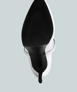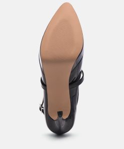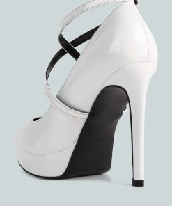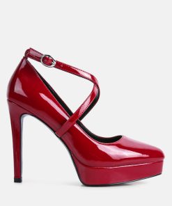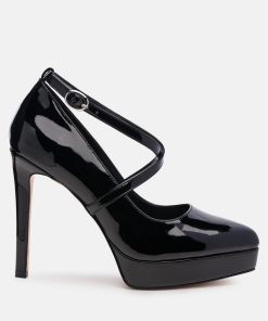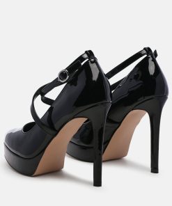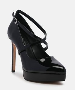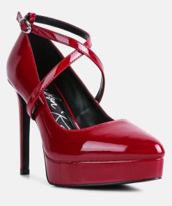 Patent faux leather cross-strap pumps are the epitome of contemporary sophistication. These stylish heels can elevate any outfit, whether you’re heading to a formal event or adding a chic touch to your work attire. Their sleek design and cross-strap detail provide a modern twist on a classic silhouette. Pair them with a tailored dress for a polished look or with jeans for a trendy, fashion-forward ensemble.