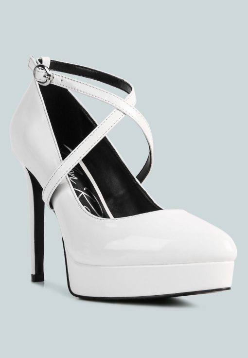 Patent faux leather cross-strap pumps are the epitome of contemporary sophistication. These stylish heels can elevate any outfit, whether you’re heading to a formal event or adding a chic touch to your work attire. Their sleek design and cross-strap detail provide a modern twist on a classic silhouette. Pair them with a tailored dress for a polished look or with jeans for a trendy, fashion-forward ensemble.