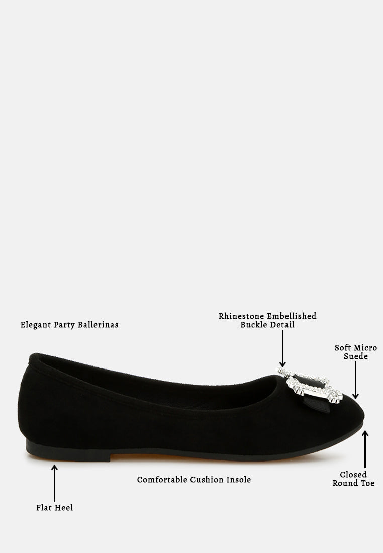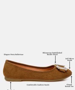 Where elegance meets sparkle for your special occasions—crafted with high-quality microfiber, these ballerinas are designed to make you shine on the dance floor. The rhinestone-embellished buckle detail makes them an even better pair of shoes for parties or casual hangouts.