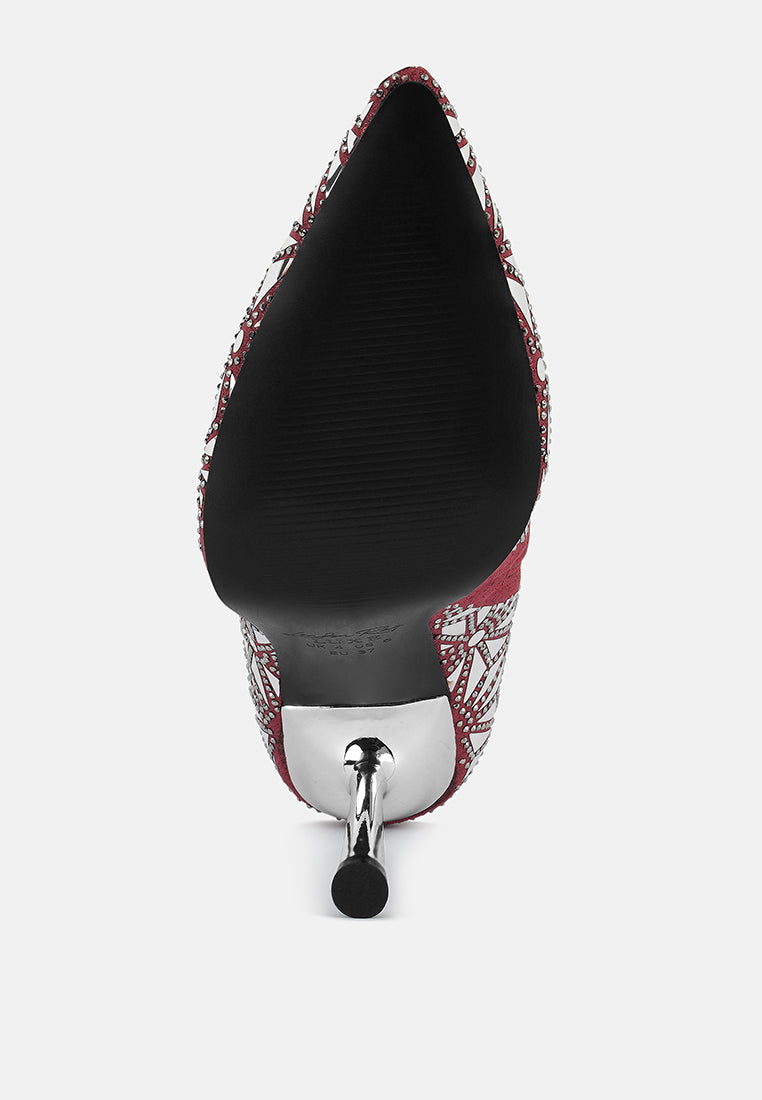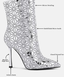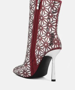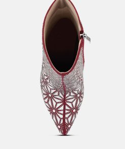 Women’s Shoes London Rag Precious Mirror Embellished High Ankle Boots | Red