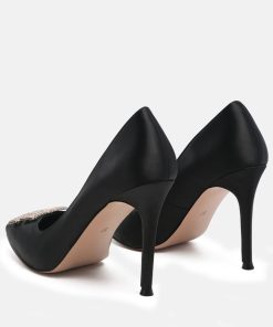 Indulge in sophistication with these high heel brooch detail pumps. These elegant pumps, adorned with a captivating brooch detail, exude opulence and charm. Perfect for formal occasions, they effortlessly elevate any ensemble with a touch of refined allure.